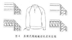 分钟可缝制3000~4200个覆盖链式线迹。由于其圆筒机座直径较小,特别适合于针织物狭小部位如袖口、裤腿等的缝合和表面装饰。图4为其应用实例。